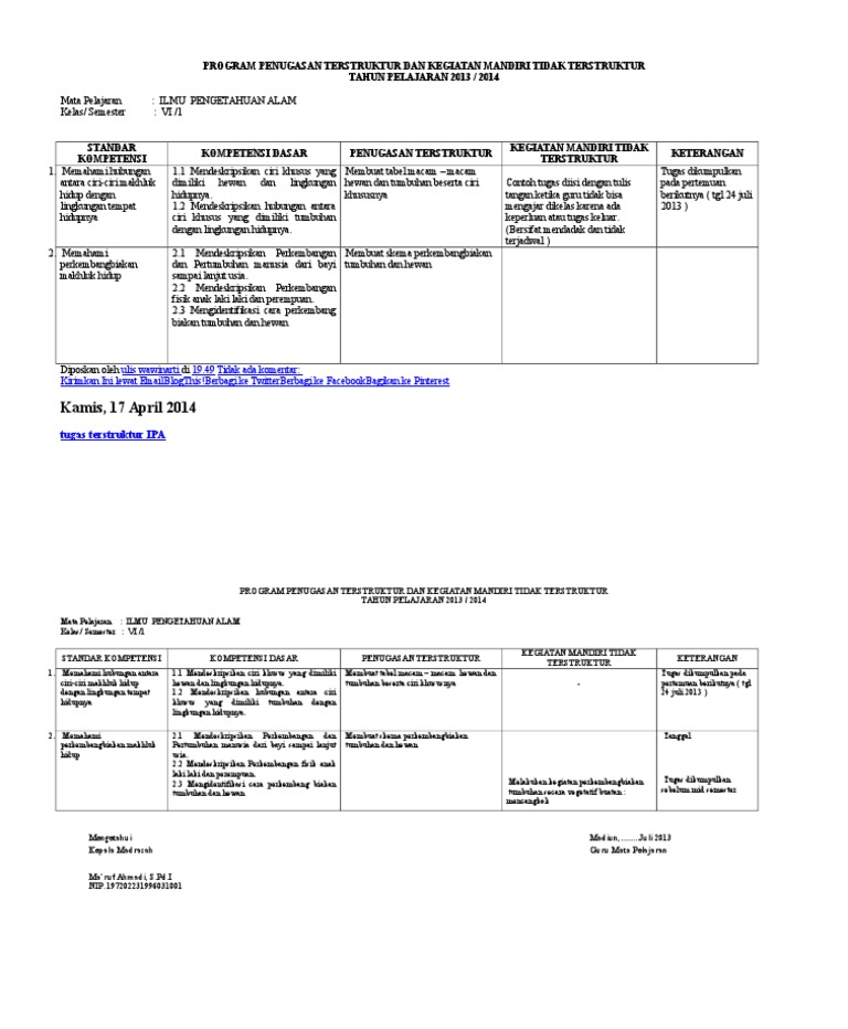 Tugas mandiri terstruktur dan tugas mandiri tidak terstruktur di sini kami telah membagikan format dan bentuk yang sudah jadi dalam format. Contoh instrumen tugas mandiri tidak terstruktur. Contoh format tugas terstruktur dan kegiatan mandiri guru. Contoh tugas terstruktur dan tidak terstruktur. 2012/2013 standar kompetensi dasar kegiatan waktu keterangan kompetensi 2.