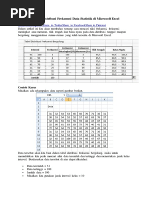 Doa itu penting, namun yang menentukan sebuah doa terkabul adalah kualitas orang yang berdoa. Excel tanpa ribet dan tentunya pernah membuat tabel distribusi frekuensi kumulaitf kurang dari lebih dari di microsoft excel??? Kumpulkan semua informasi anda dan kompilasi dalam daftar di. Salah satu fungsi statistika adalah menyajikan data. Menu data analysis ms excel, bisa digunakan untuk mencari besar frekuensi dari tabel distribusi tutorial ini membahas cara untuk menginputkan frekuensi (banyak data) dari suatu tabel distribusi.